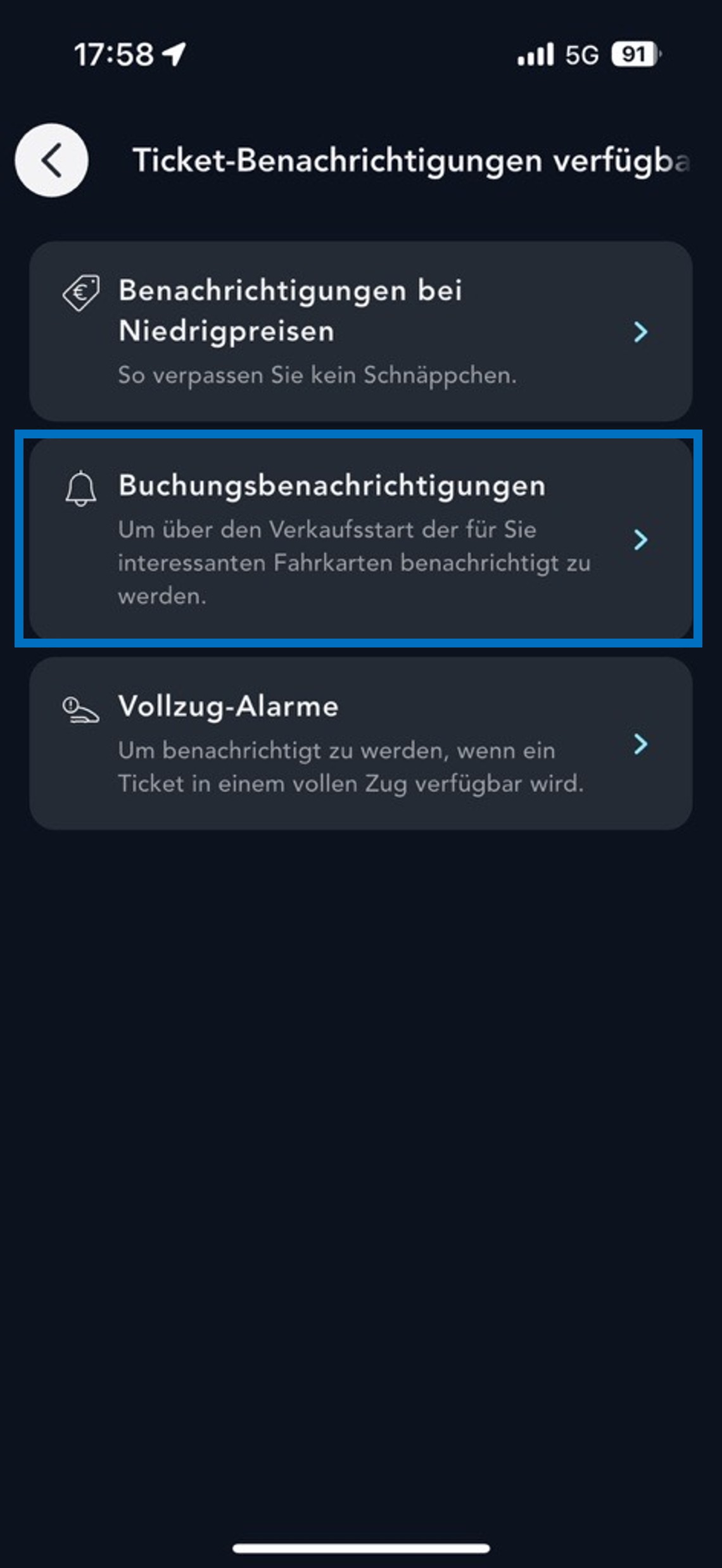 Klicken Sie dann auf „Benachrichtigungen Ticketbuchung“.