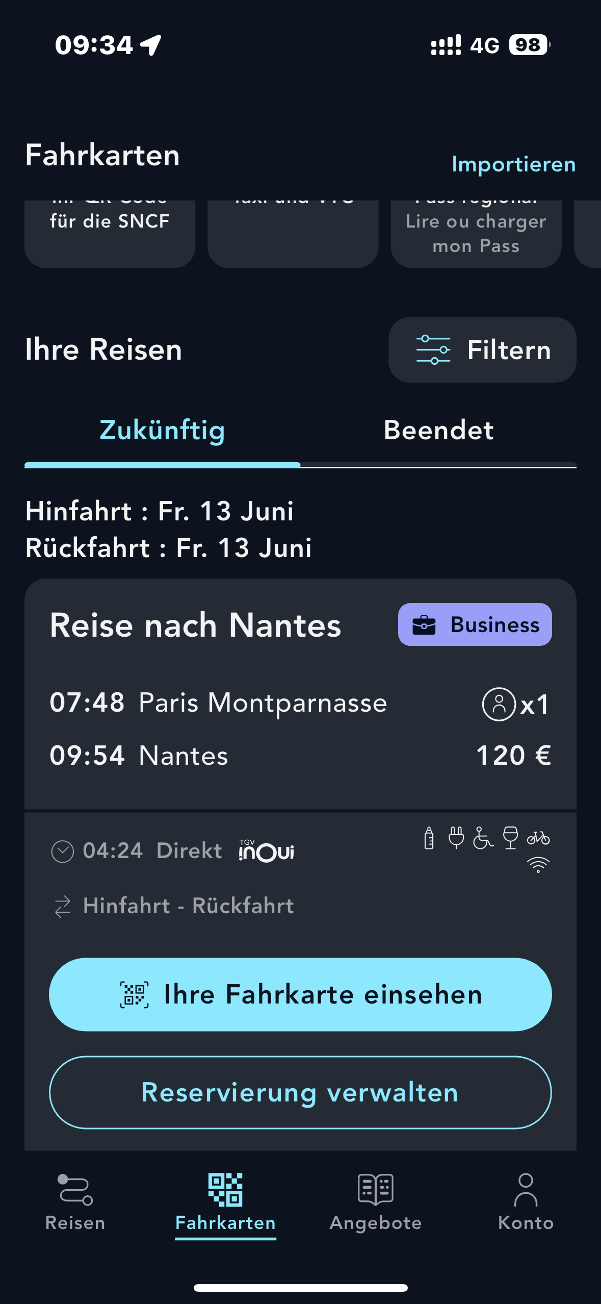 Der „Business-Bereich"" von SNCF Connect ist ein Bereich für Berufstätige, in dem Sie Ihre Geschäfts- und Privatreisen über ein einziges Kundenkonto verwalten können. Sie können Ihre Reisen leicht unterscheiden und zahlreiche Funktionen nutzen, die speziell auf die Bedürfnisse von Geschäftsreisenden und Unternehmen zugeschnitten sind.