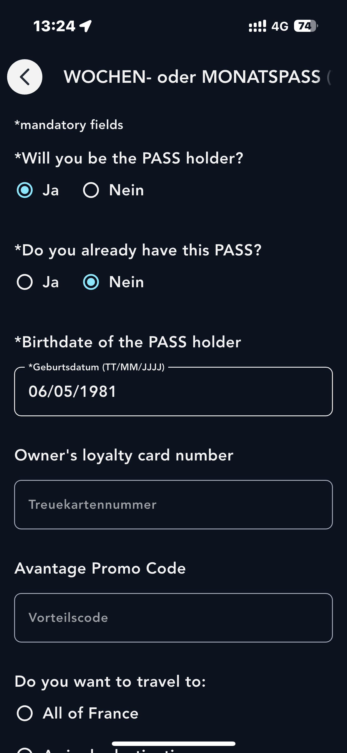 Füllen Sie das Formular aus und geben Sie auch an, für welche Strecke Sie die Pauschale kaufen möchten