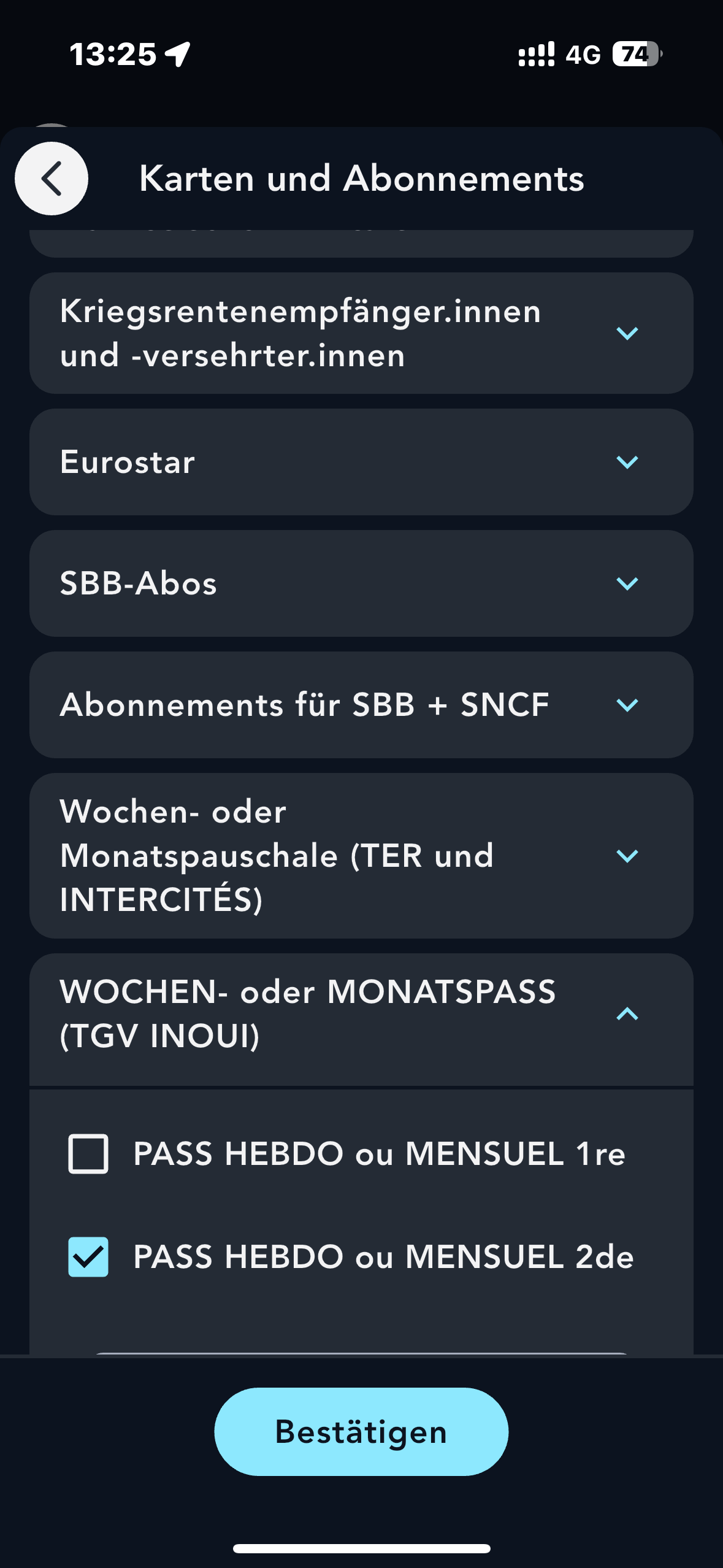 Wählen Sie zwischen dem PASS HEBDO oder PASS MENSUEL (Wochen- oder Monatskarte) in der 2. oder 1. Klasse
