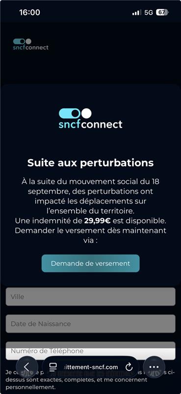 Diese E-Mails können den Anschein erwecken, von SNCF Connect zu stammen, und führen häufig zu einer Website, die der offiziellen Seite von SNCF Connect täuschend ähnlich sieht.