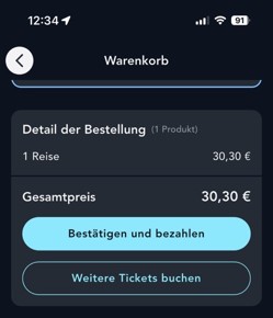 Nachdem Sie Ihre Rückfahrt ausgewählt haben, werden in Ihrem Warenkorb 2 Reisen angezeigt, die Sie bestätigen und bezahlen müssen.